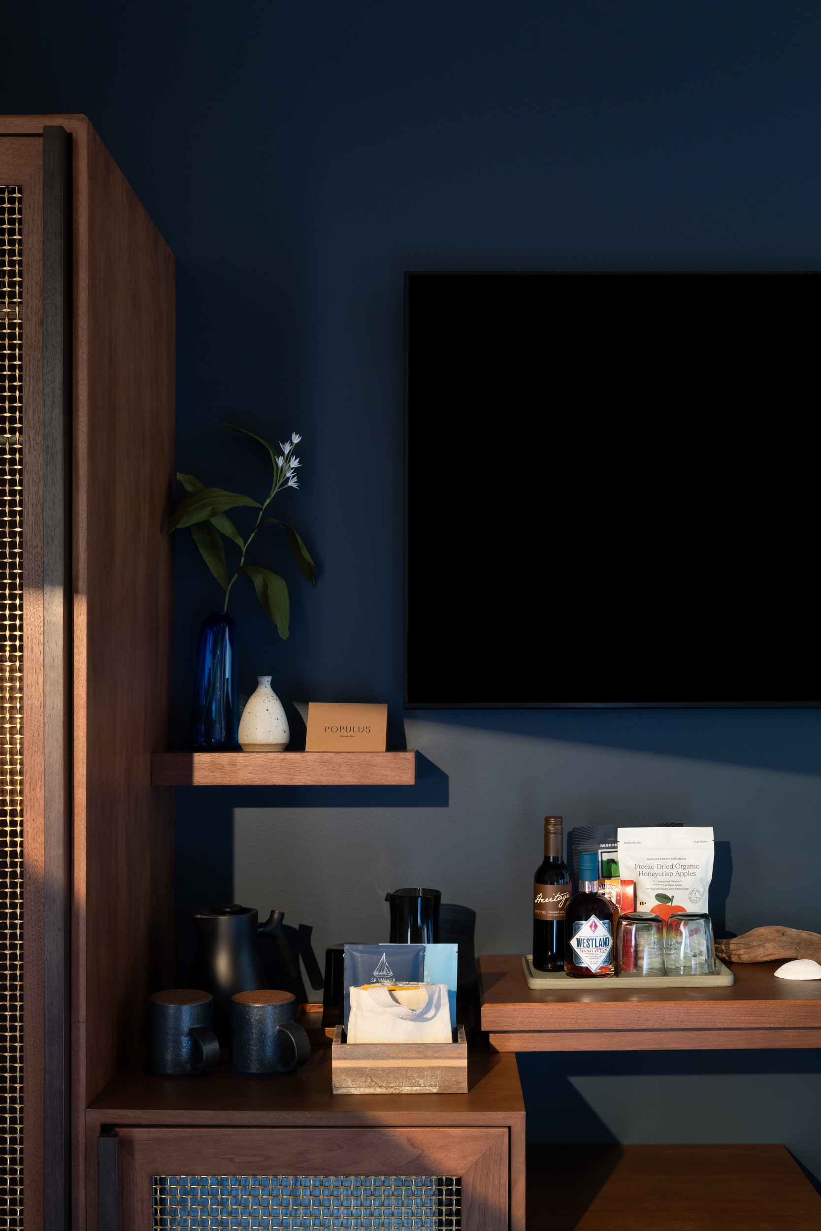 Enjoy a bottle of Project Forest wine from Browne Family Vineyards and a late checkout at 12:30 PM. With every stay and every bottle, one tree is planted in support of reforestation efforts, reflecting Populus Seattle’s commitment to sustainability and thoughtful travel.